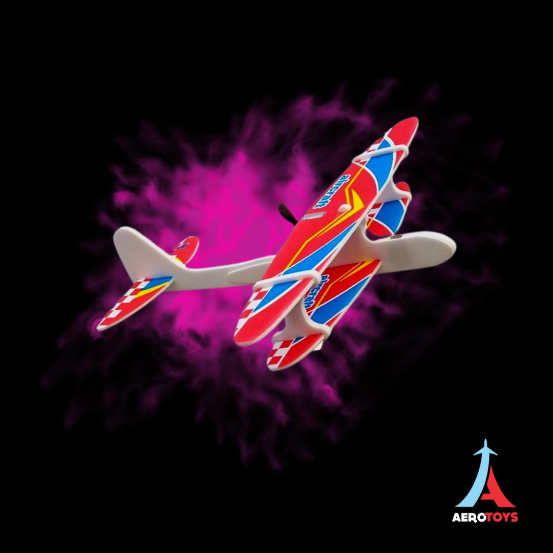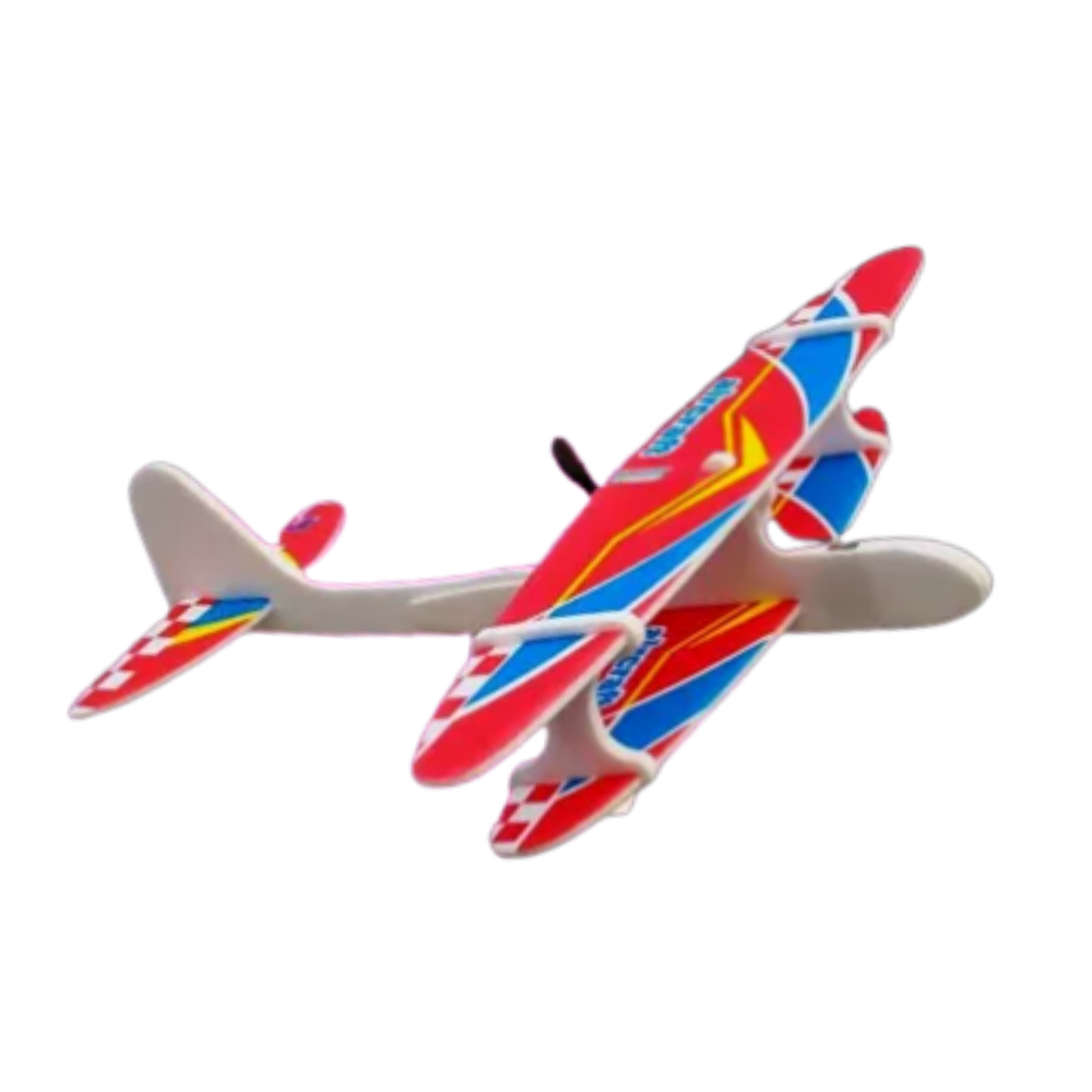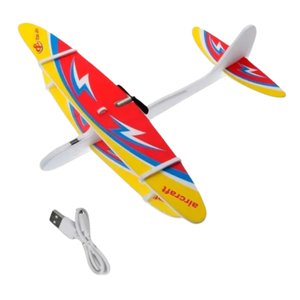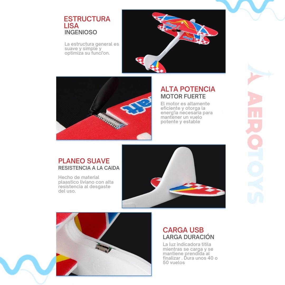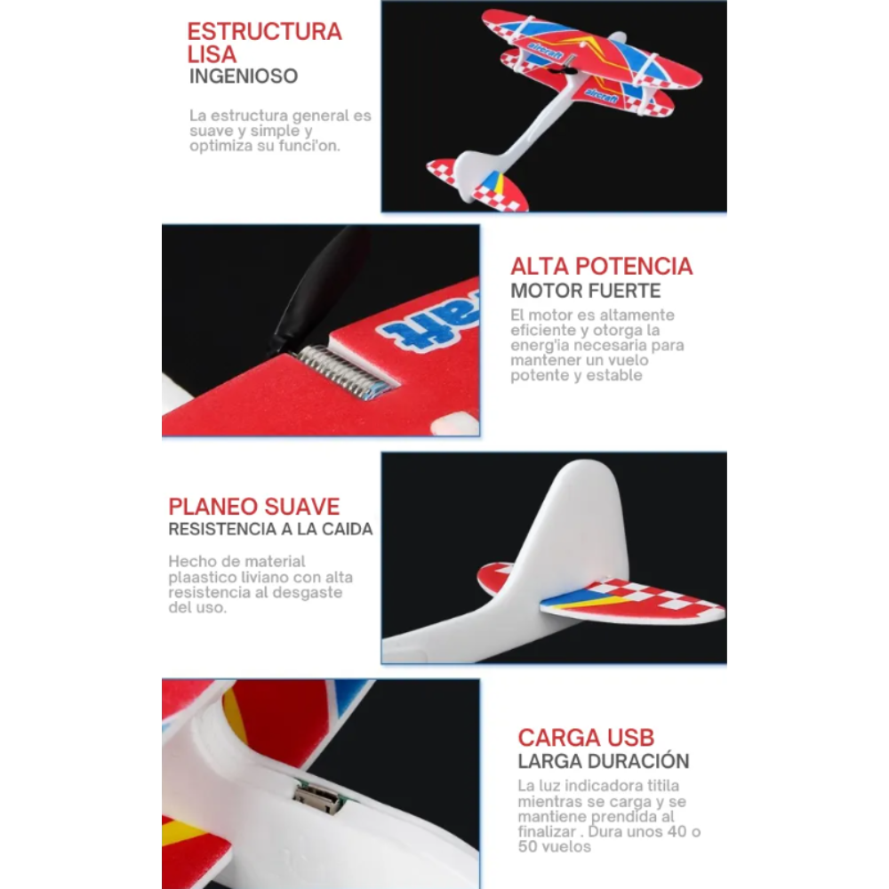 Un interruptor oculto en la cabeza de la aeronave enciende el motor a alta velocidad. Lanzando a mano como un avión de papel, Comenzará a volar en círculo sin parar hasta apagar su motor en 15 segundos.